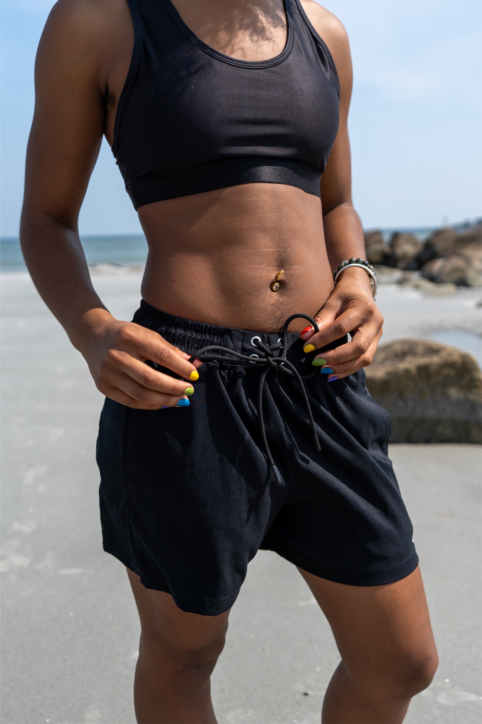 Our 5” boardshorts are designed with every body in mind. Sitting higher on the hips and built to accommodate wider hips and curves, these shorts are a tailored, gender-arming fit without compromising movement or style.